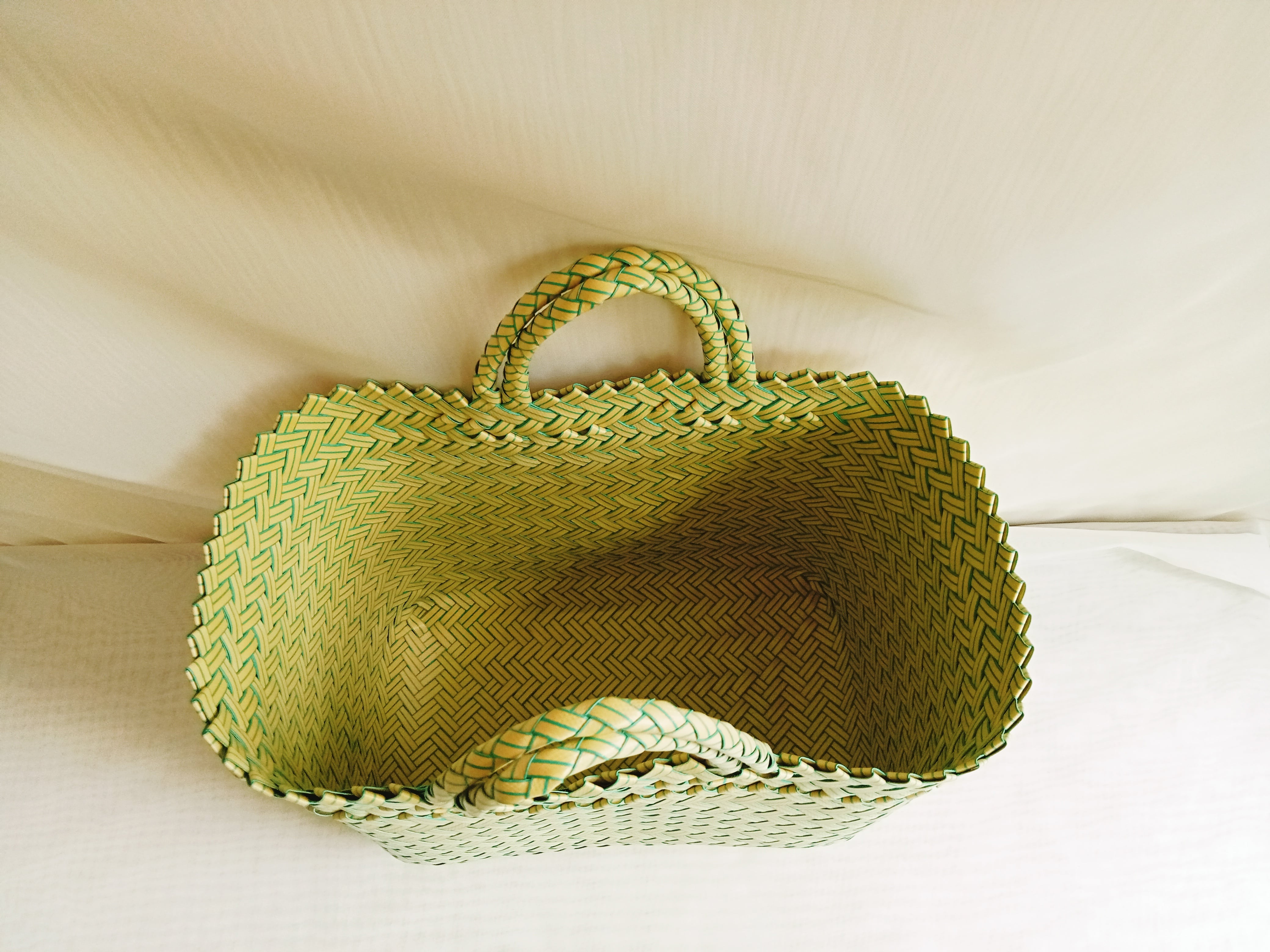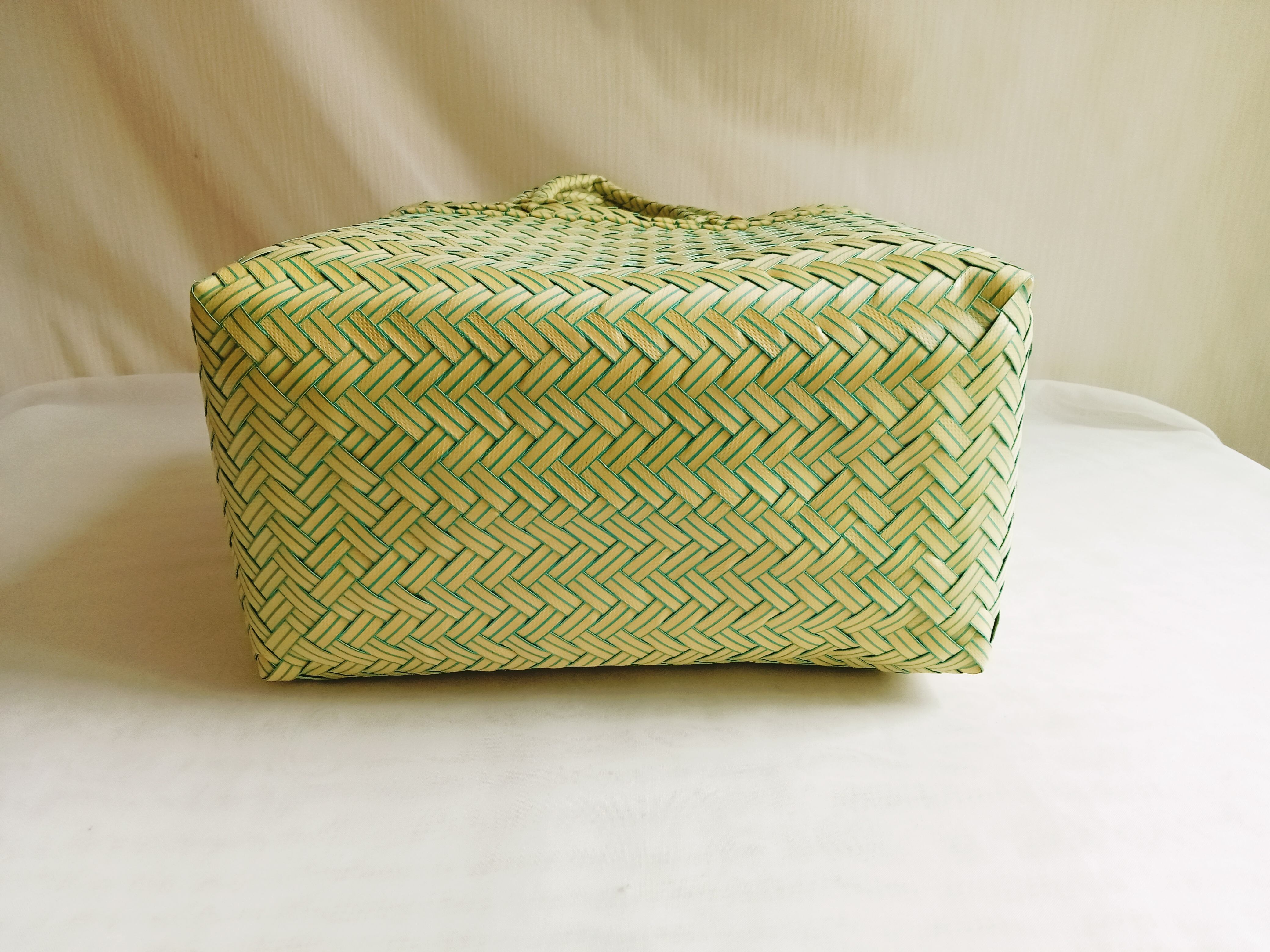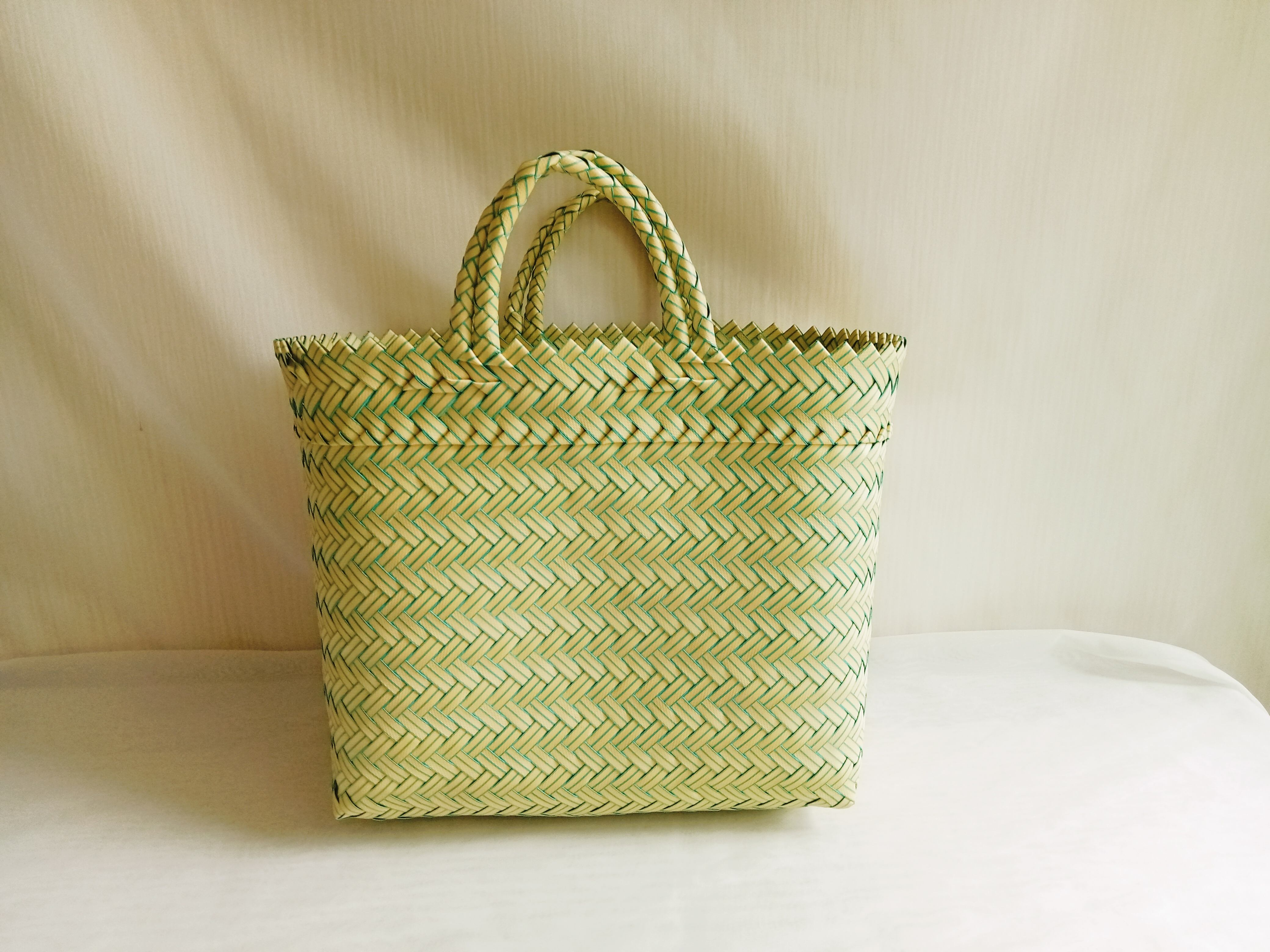 インドネシアの職人が丹精込めて編み上げた、プラテープ製のバッグは水にも強く、ハンドルが二重なのでとっても丈夫! ビーチや温泉、アウトドアでのお出かけに最適です。