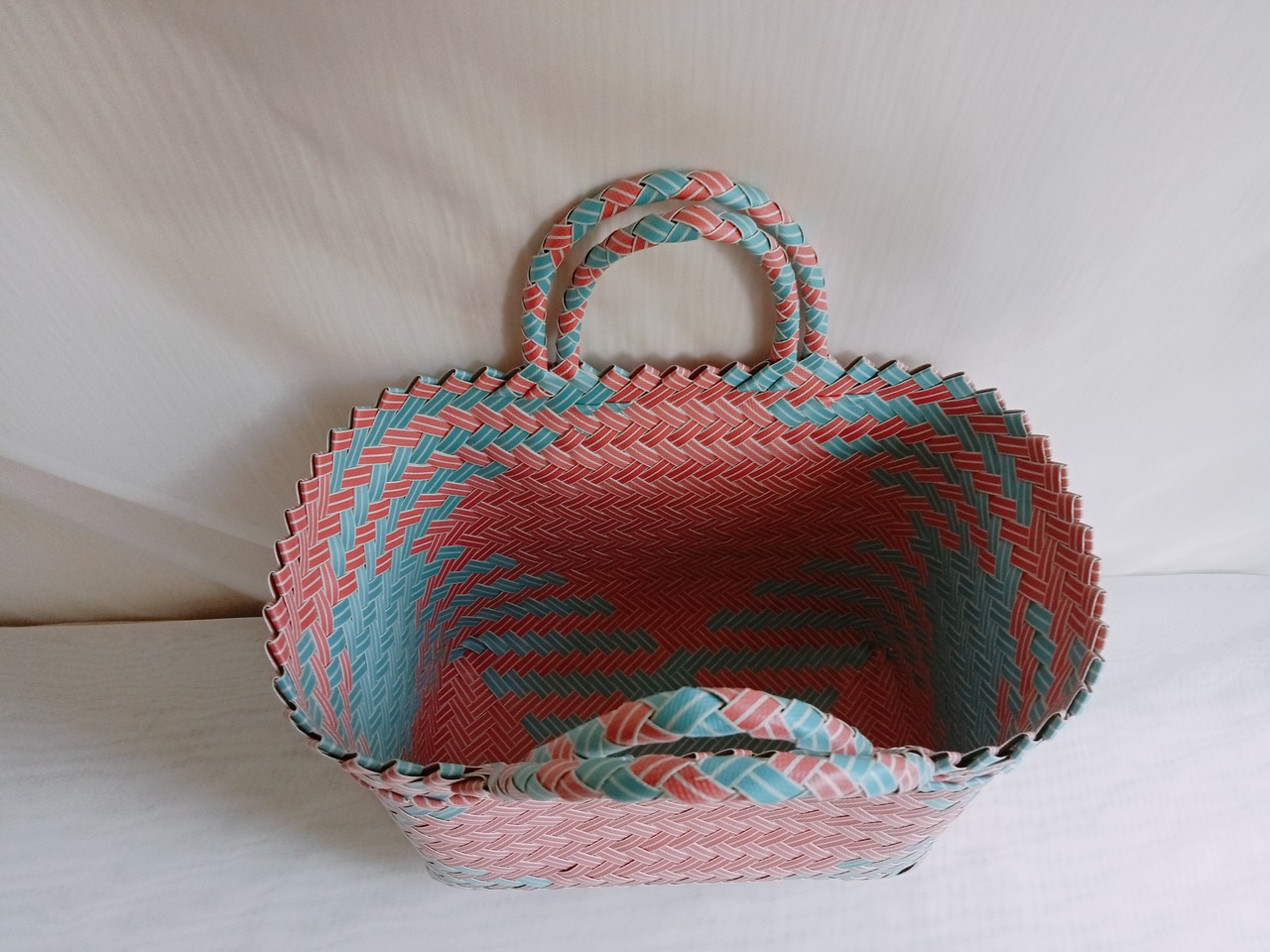 インドネシアの職人が丹精込めて編み上げた、プラテープ製のバッグは水にも強く、ハンドルが二重なのでとっても丈夫! お買い物バッグとしてはもちろん、ビーチや温泉、アウトドアでのお出かけに最適です。