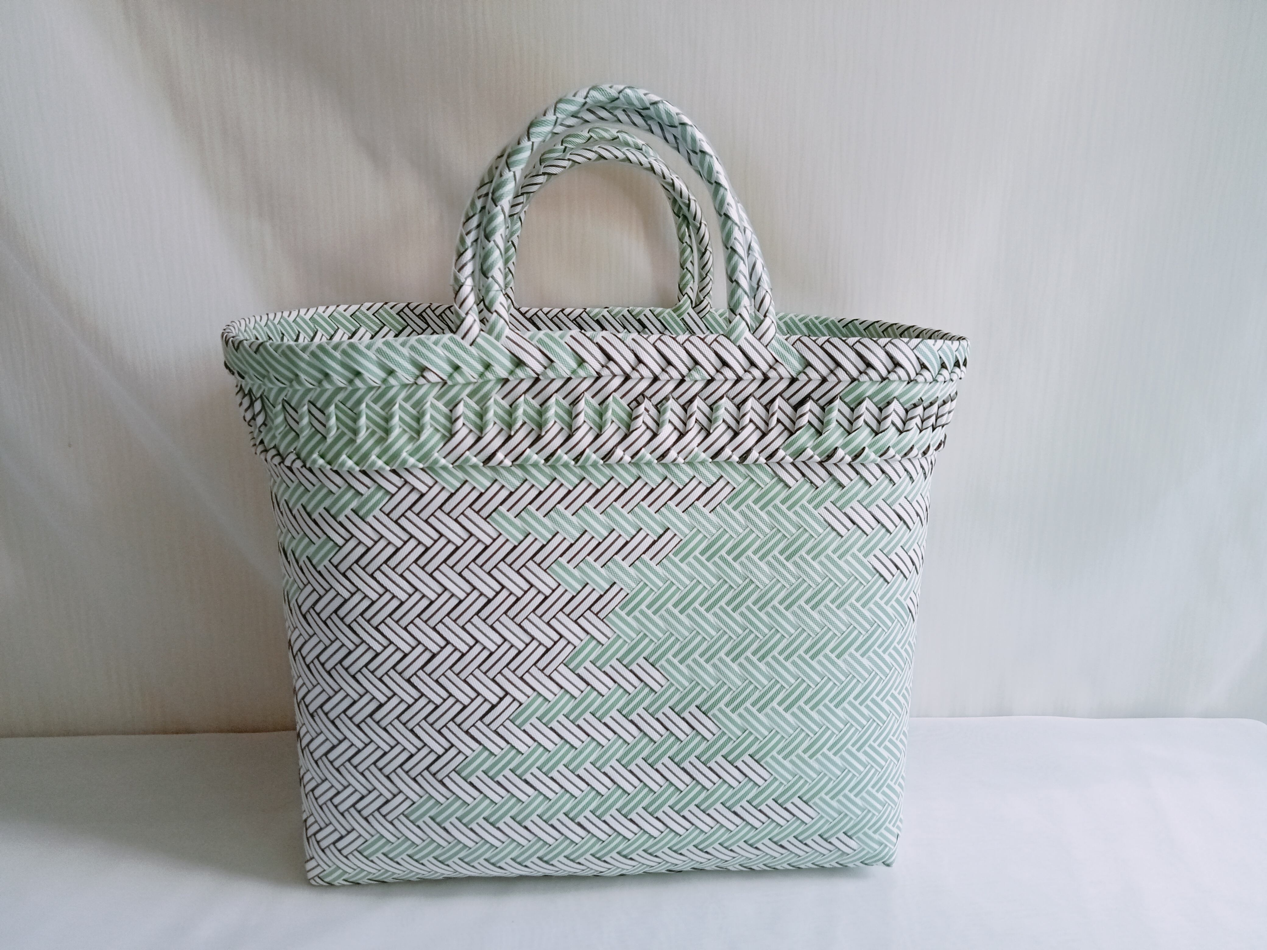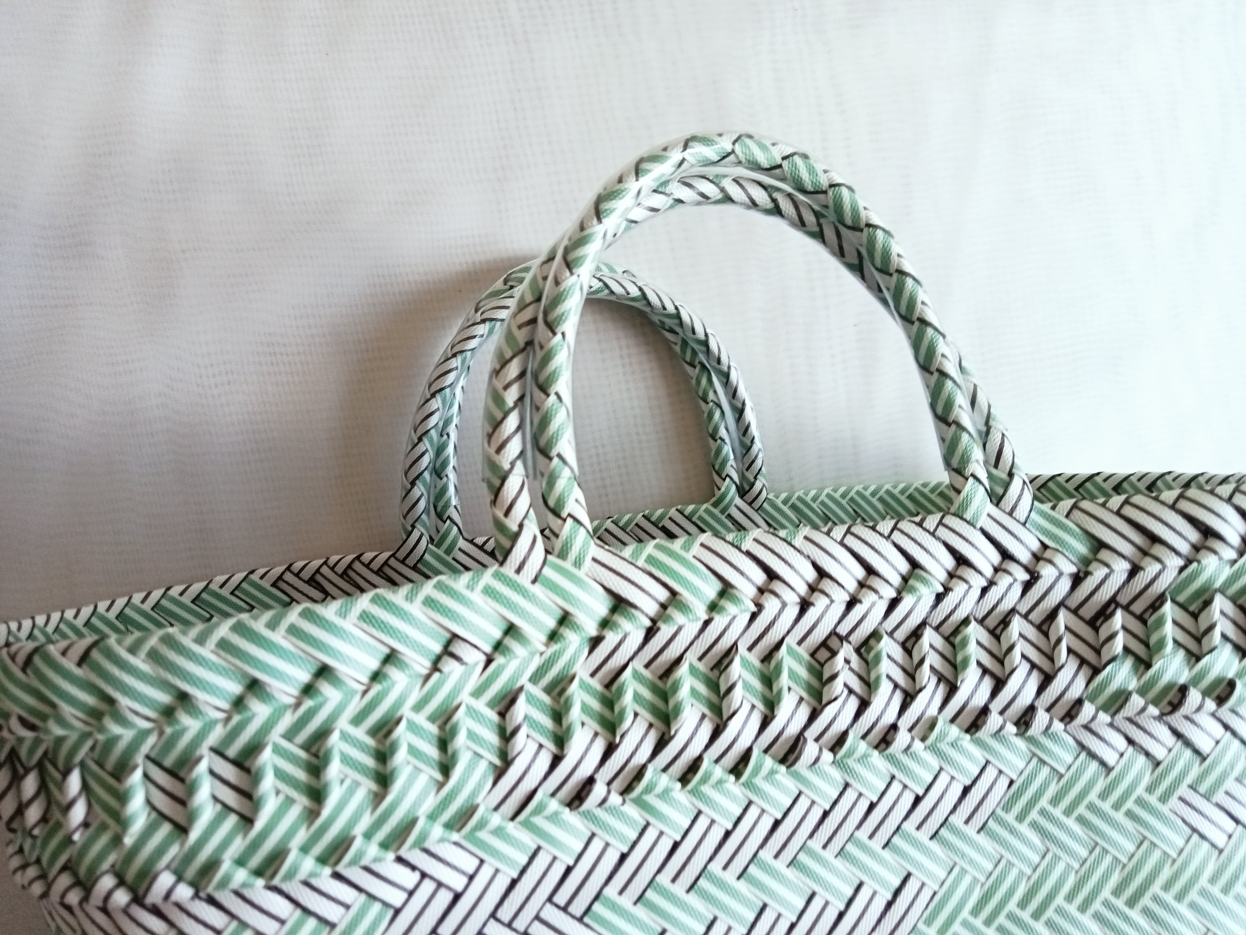 【期間限定販売 8月25日まで】パサールバッグ厚手素材 Sサイズ(MIXカラー:グリーンx白)