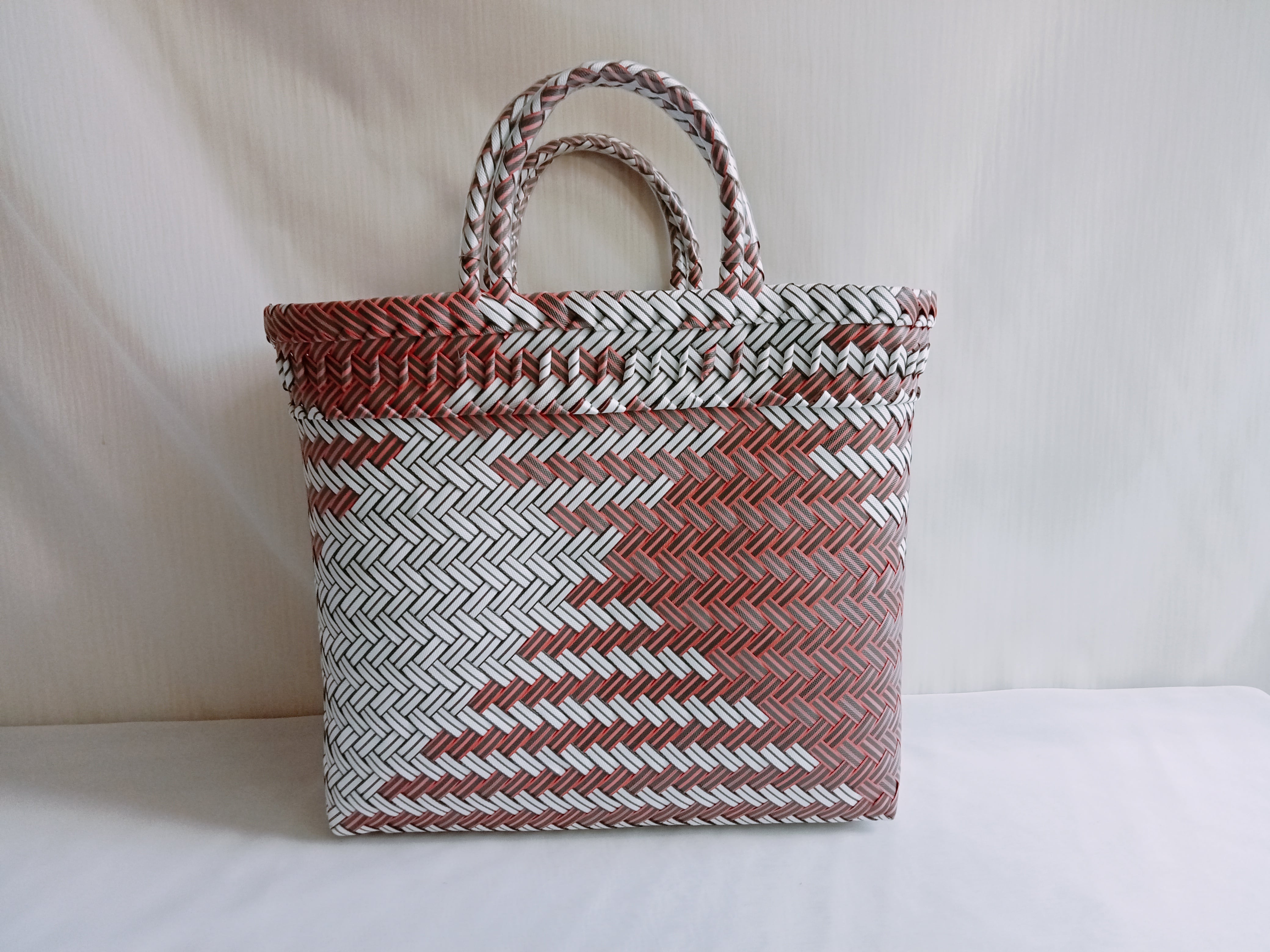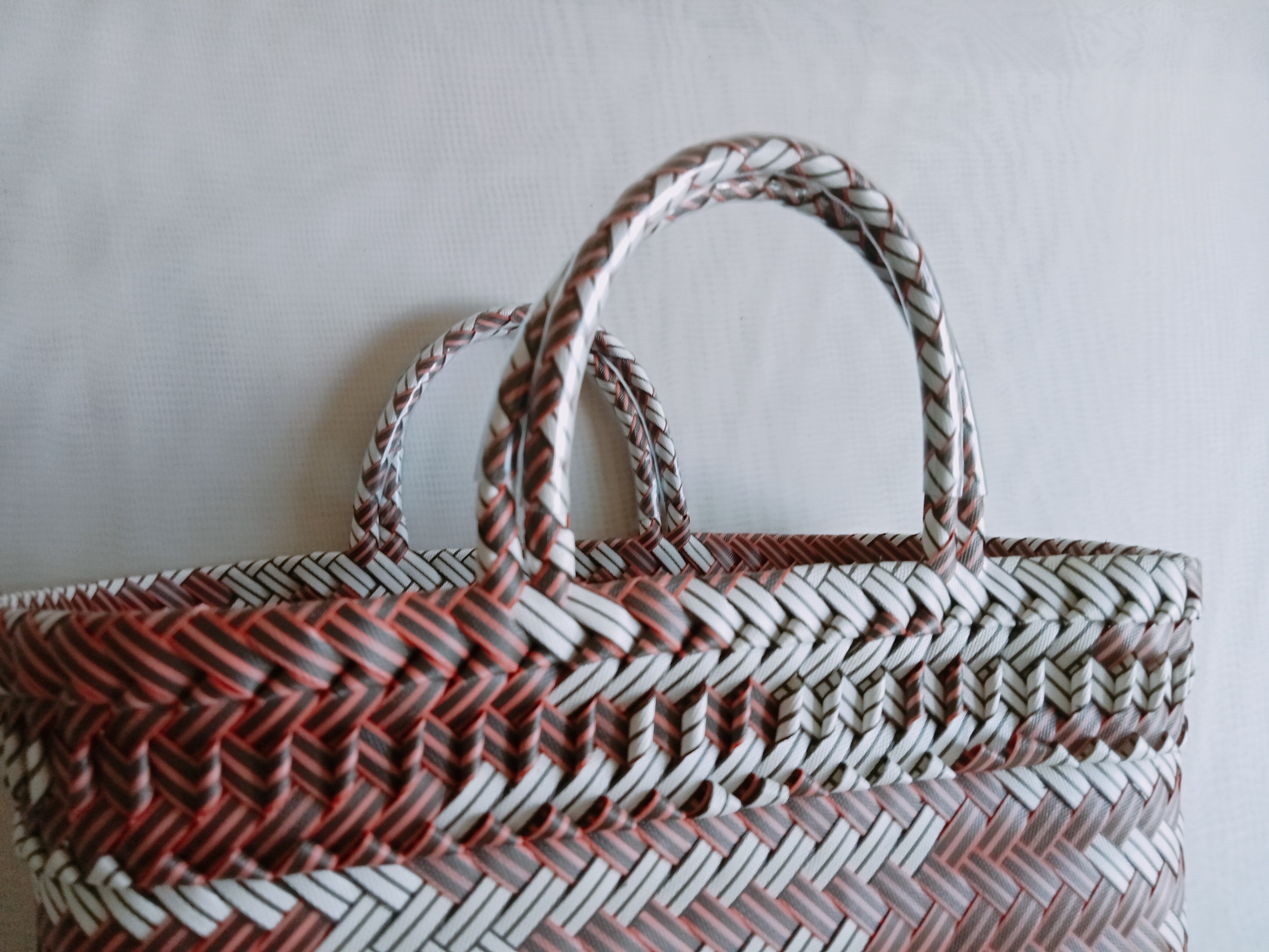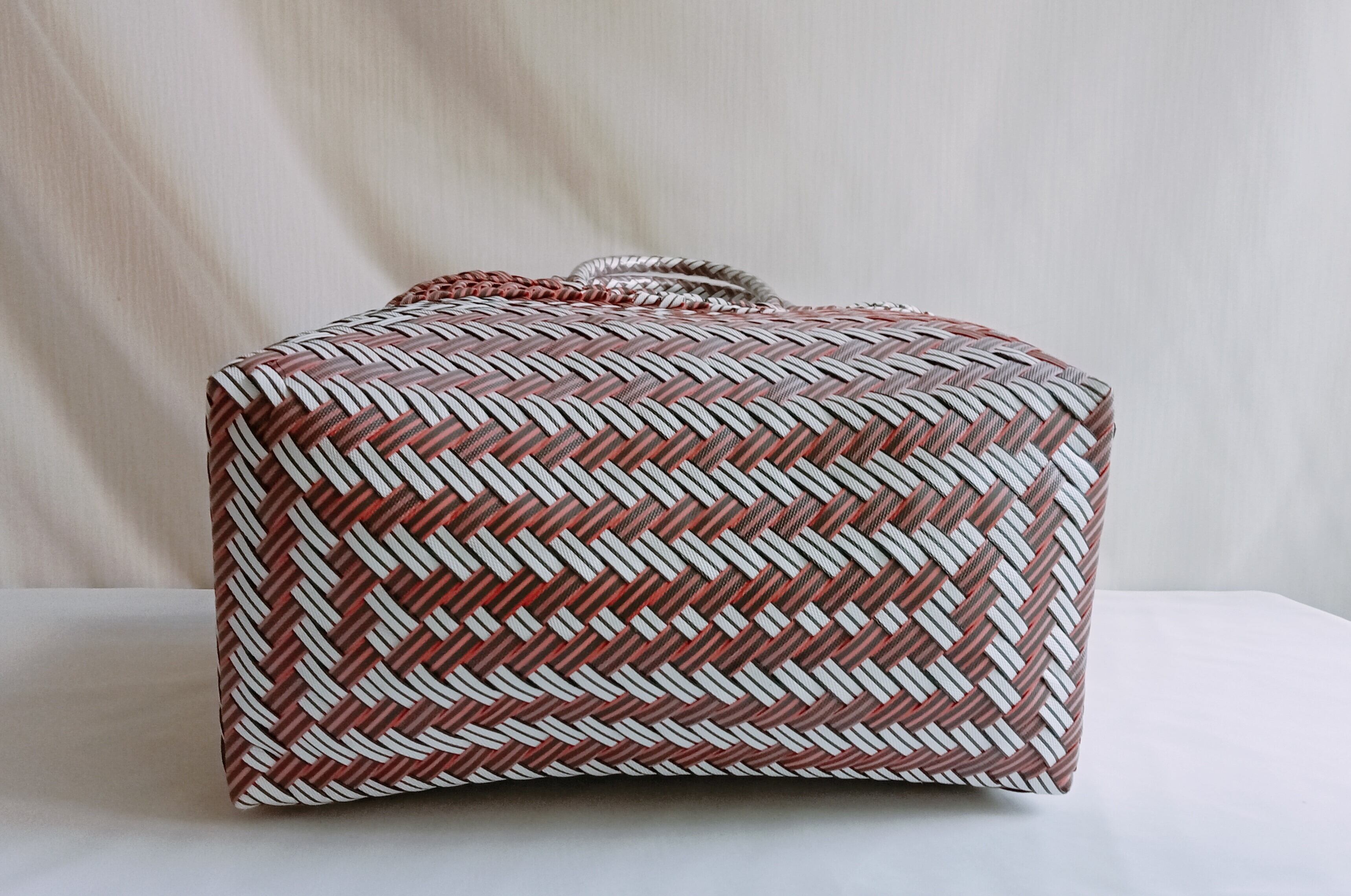 【期間限定販売 8月25日まで】パサールバッグ厚手素材 Sサイズ(MIXカラー:あずき色x白)