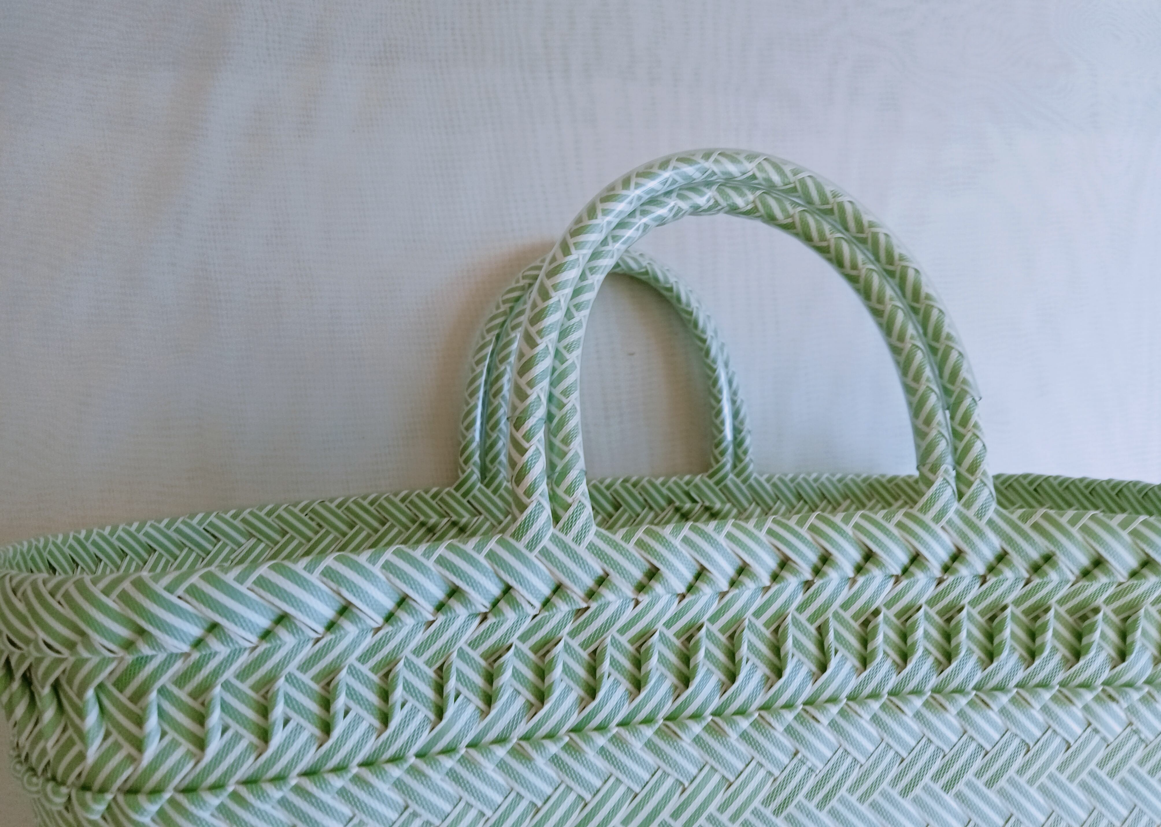 プラテープでできたこのバッグは、ピクニックやビーチ、アウトドア、お買い物バッグやビーチバッグ、おしゃれなママバッグとしても最適です。