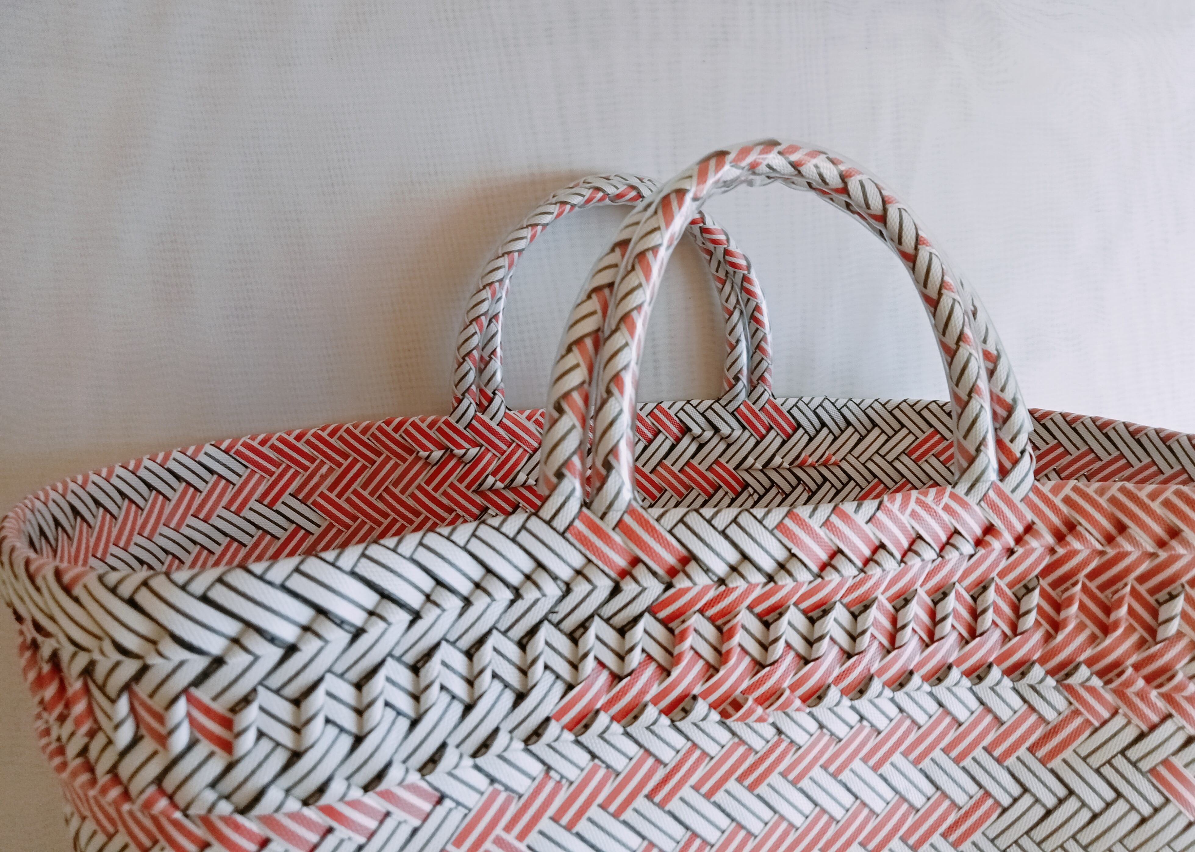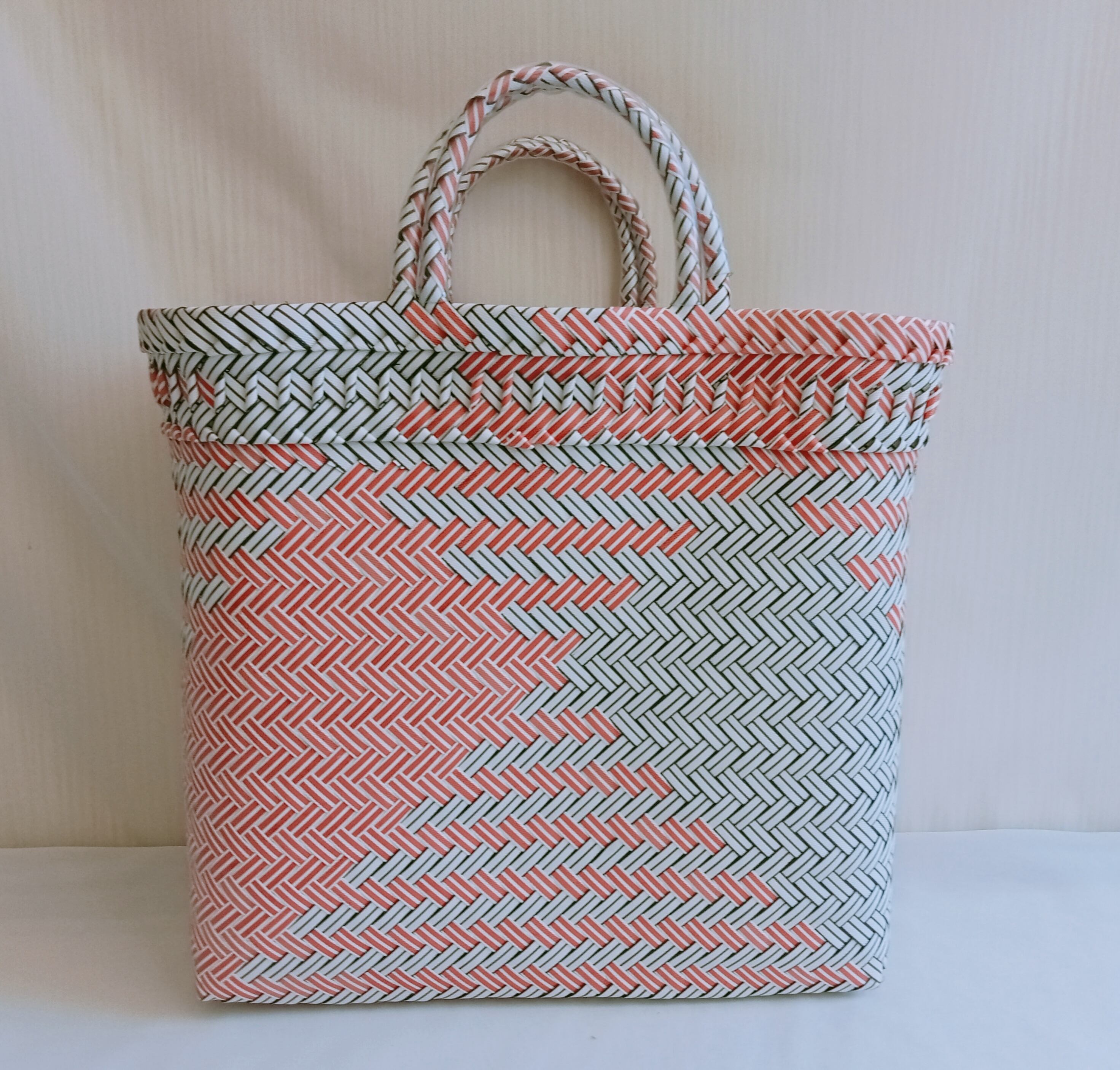 【期間限定販売 8月25日まで】パサールバッグ厚手素材 Mサイズ(MIXカラー:ピンクx白)