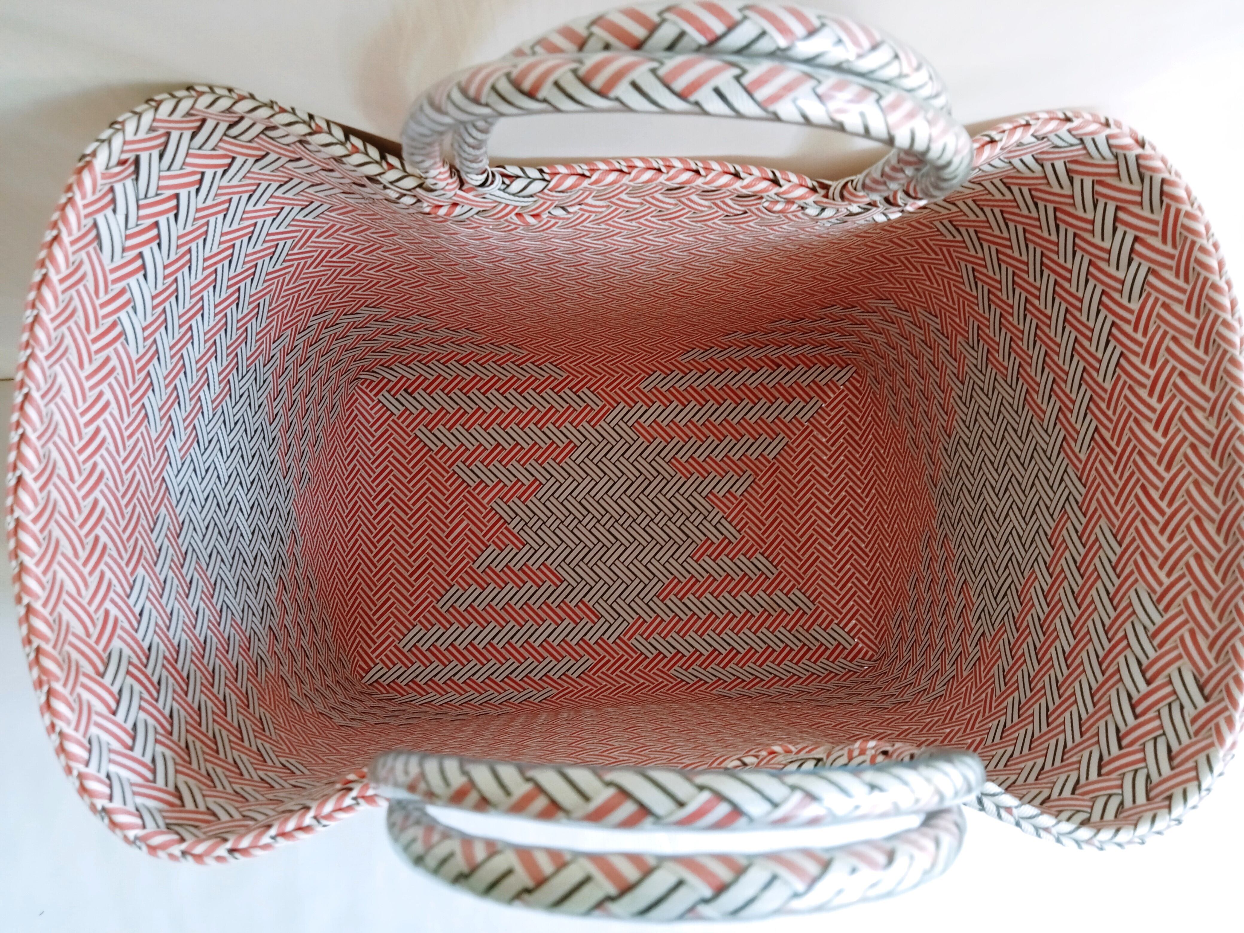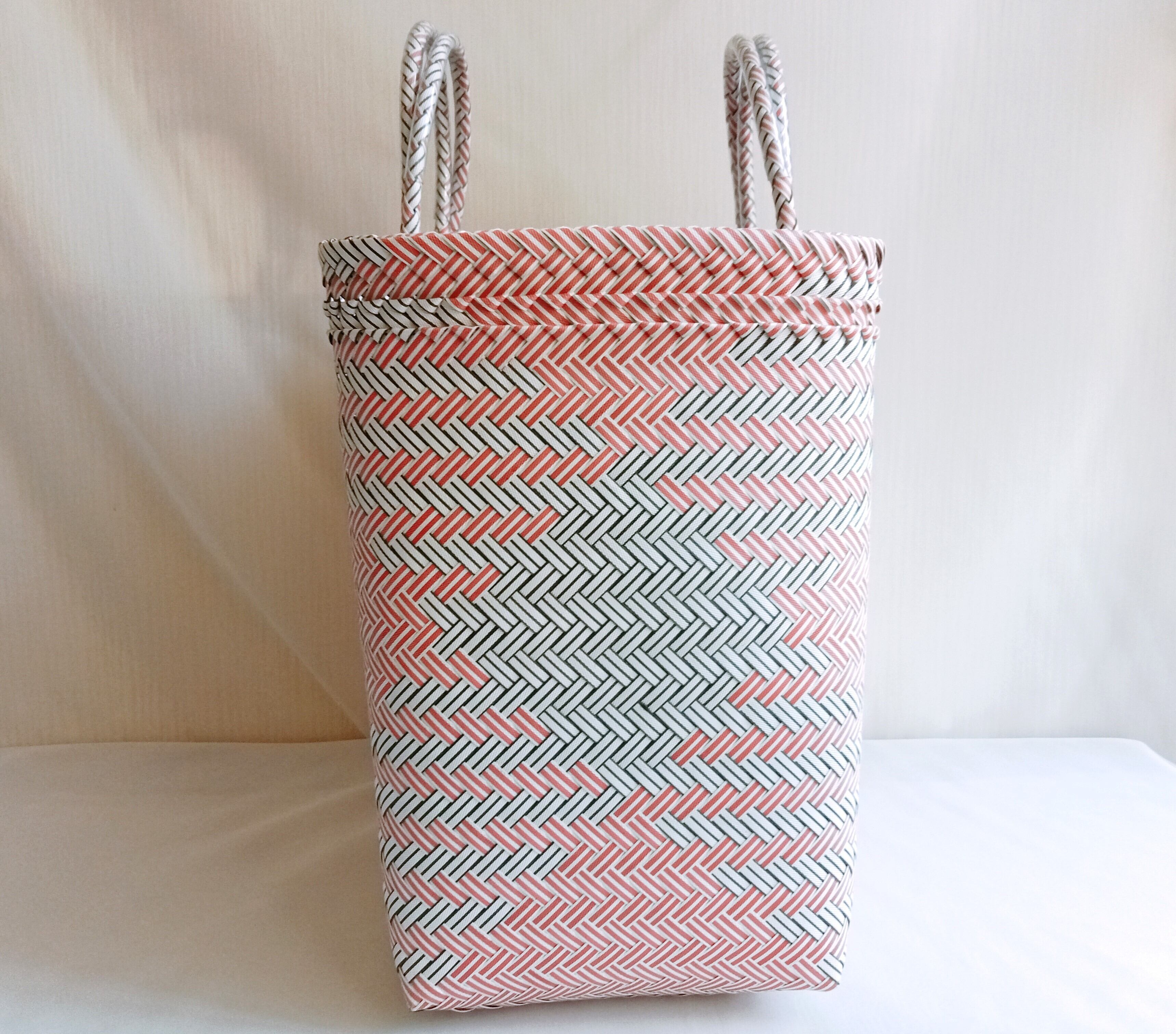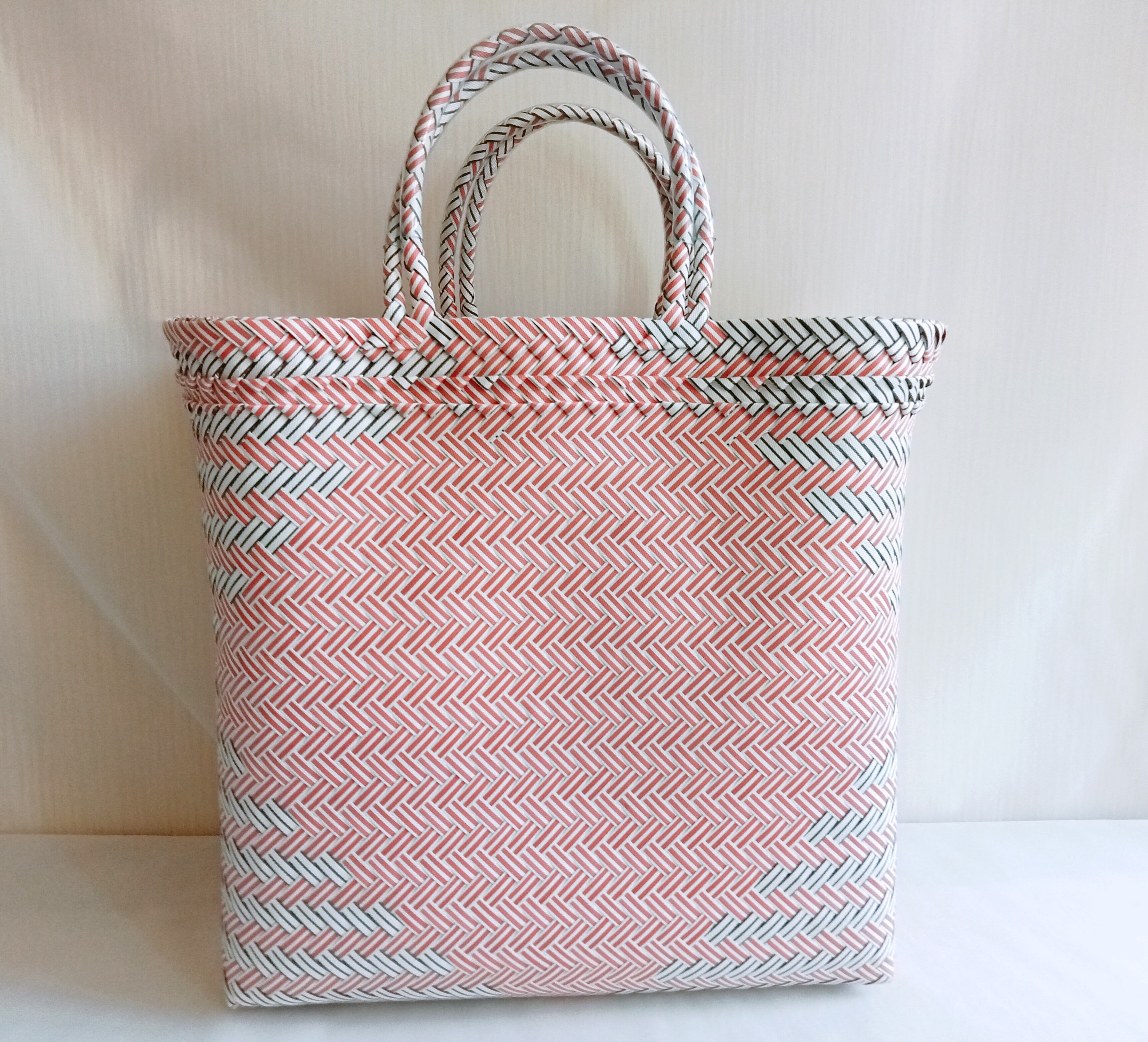 【期間限定販売 8月25日まで】パサールバッグ厚手素材 Lサイズ(ダイヤ柄:ピンクx白)